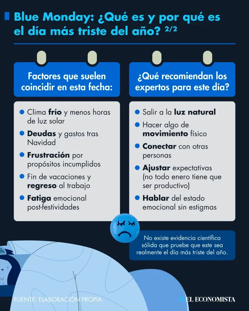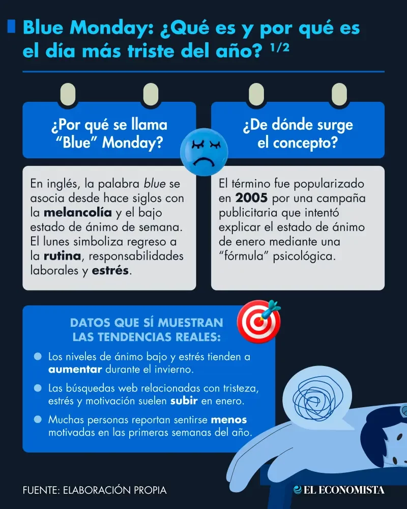 El ”Blue Monday”, tercer lunes de enero, es considerado el día más triste del año. Aunque no tiene respaldo científico, el concepto considera factores emocionales, económicos y climáticos que hacen de esta día y todo el mes un reto para algunas personas.