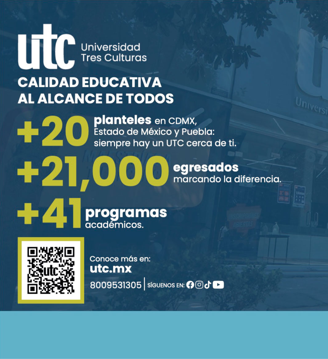 La prospectiva de la Universidad Tres Culturas (UTC) al 2027 se enfoca en ampliar su matrícula y cobertura, para que nuestro país, cuente con una opción de educación superior de calidad a costos accesibles y un modelo educativo propio y que nuestros egresados impacten de forma efectiva en el ámbito laboral.